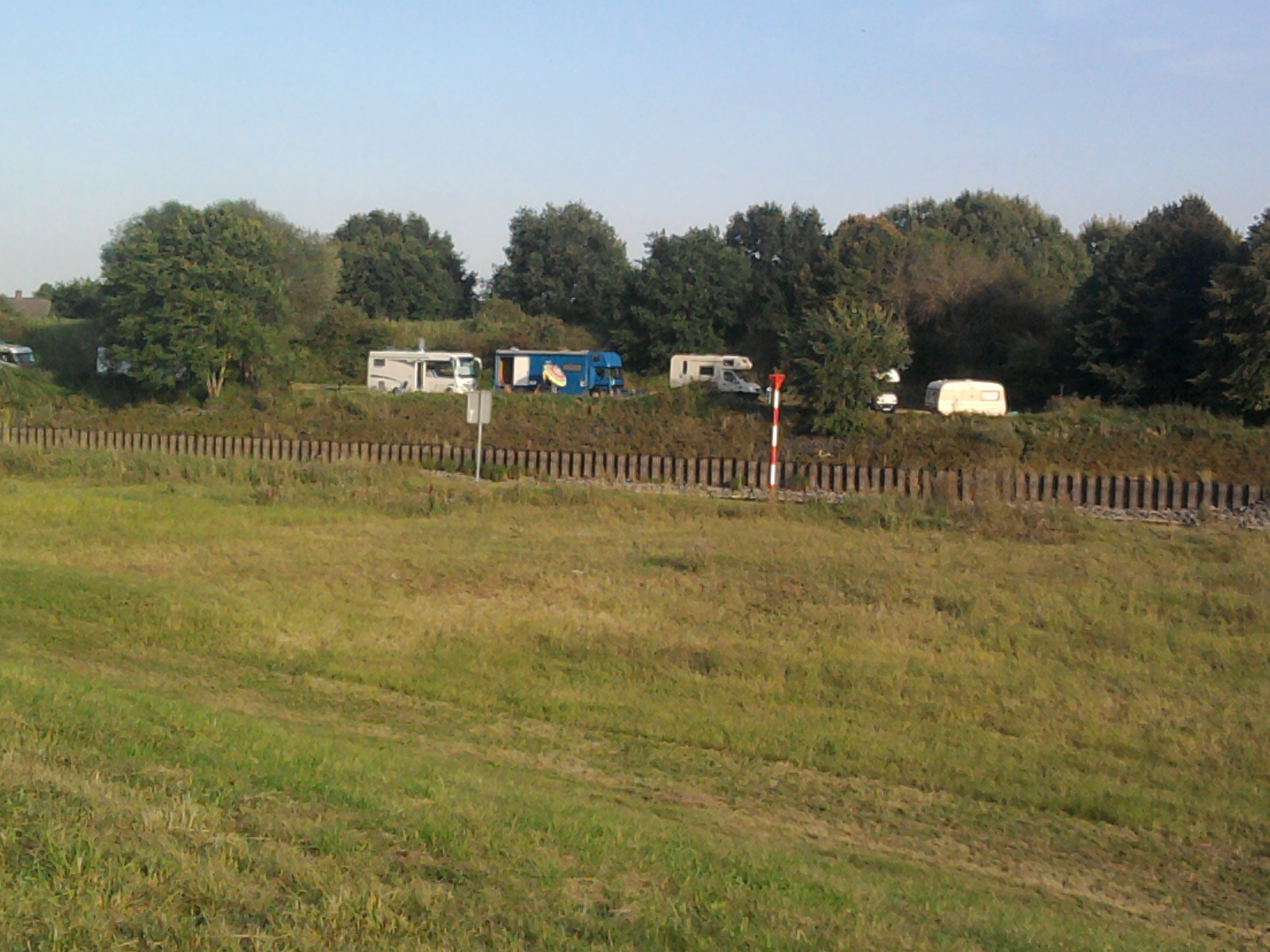 Bei der Ankunft hat der Bauer natürlich noch zu tun und weist mir kurz und knapp einen Platz in seiner Apfelplantage zu. Ich stehe jetzt wenige Meter von der Elbe entfernt. So nehme ich mein Fahrrad und radle auf dem Deich stromauf Richtung Dömitz.