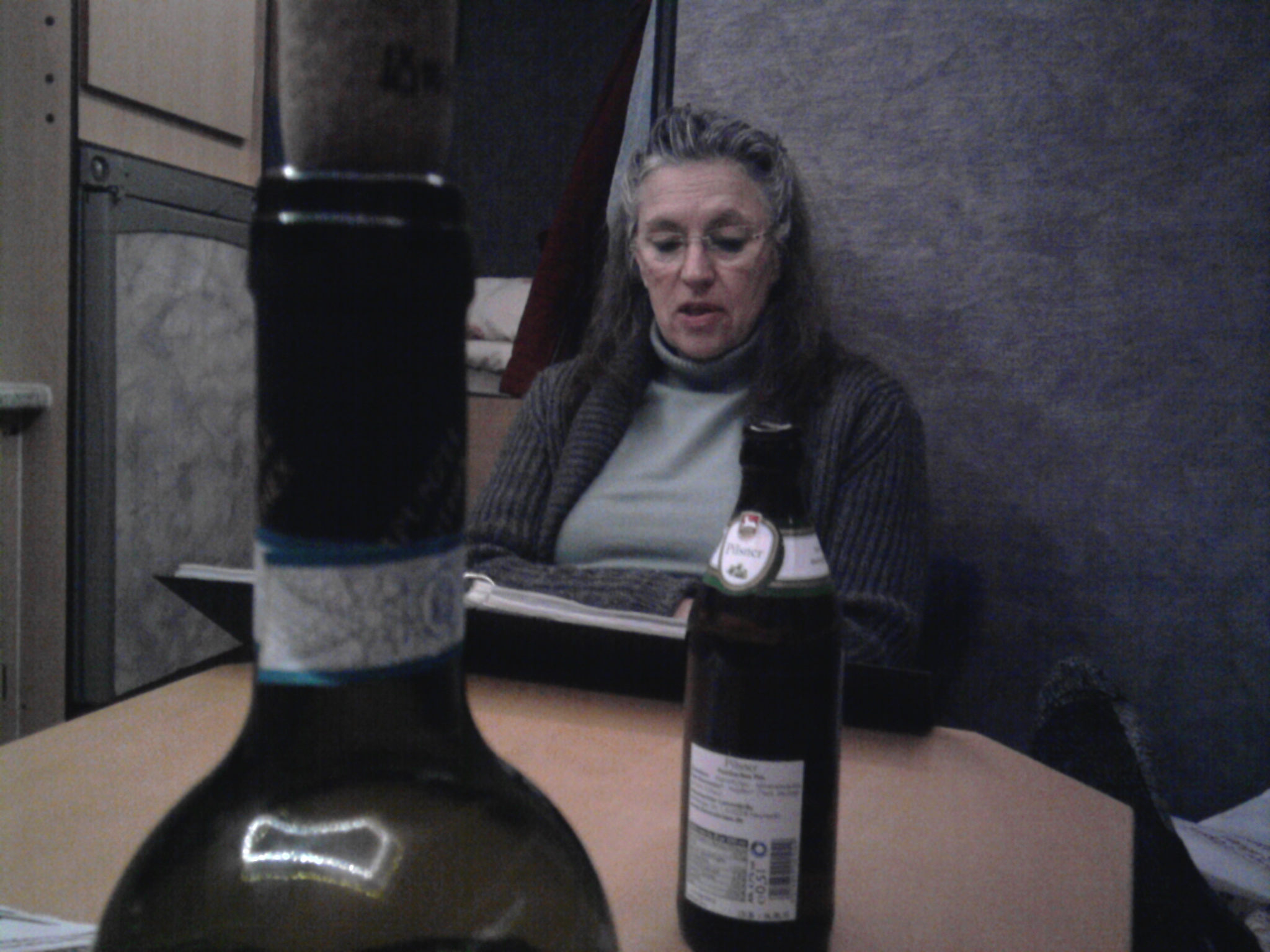 Abends essen wir schön in Big Blue und trinken Wein und Bier. Der Hund schnarcht schon wieder.