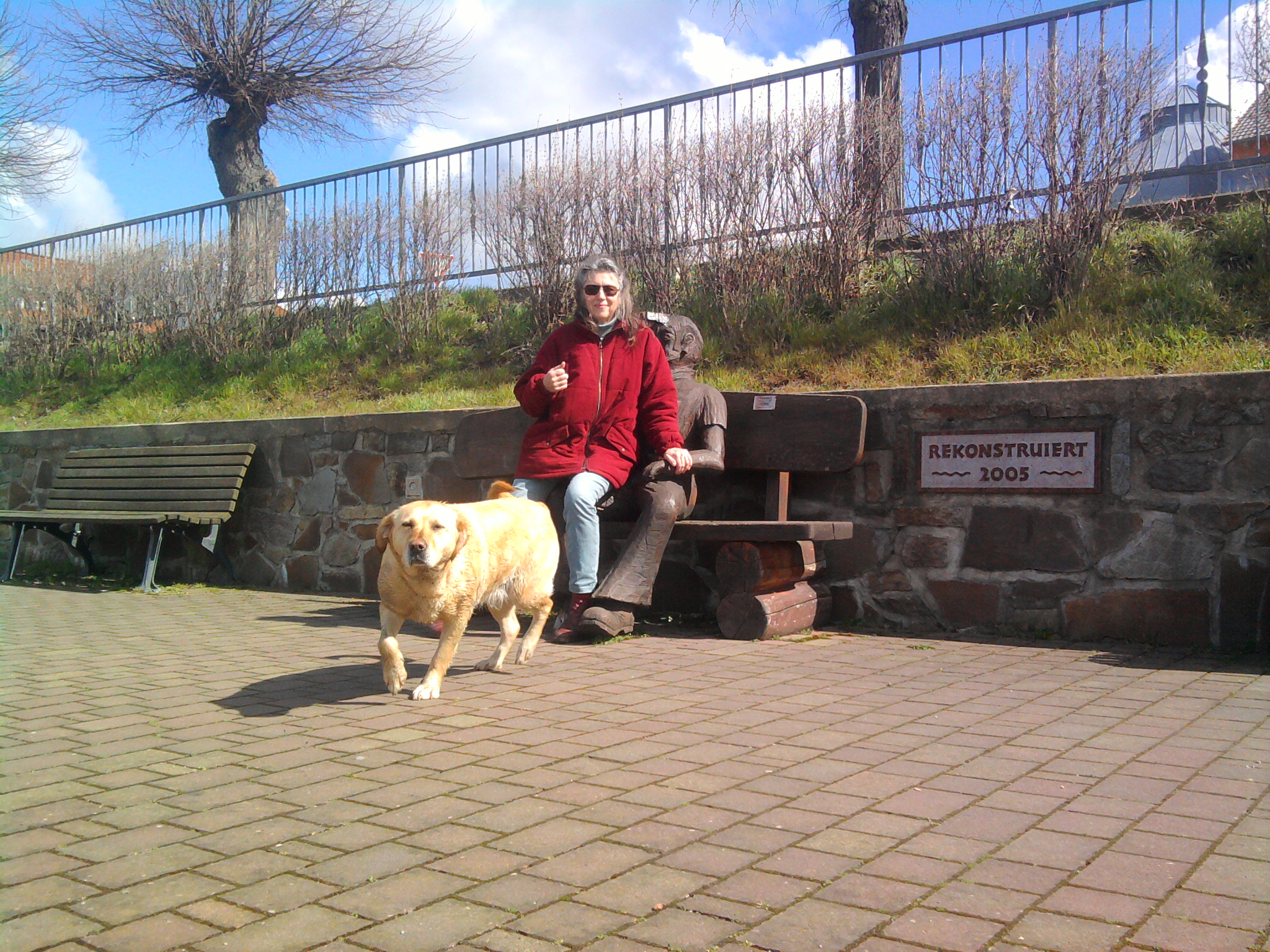In Flechtingen kommen wir an einem See vorbei. Der bietet sich förmlich an, Lara dort rein zu werfen. Aber man kann den Hund ja nirgends anfassen. So locken wir sie in den See, Heidi zieht sich Tankstellenhandschuhe an und schrubt sie sauber.
