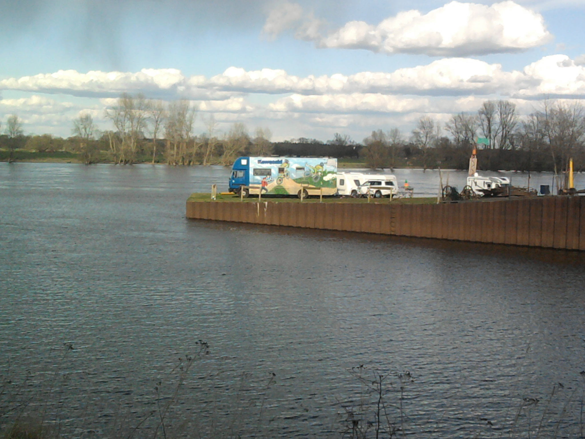 Aber dann ein wunderschöner Platz. Direkt an der Elbe. Auf der einen Seite der Hafen, auf der anderen Seite der Blick über die Elbe hin zu grasenden Rinderherden. Und auf dem Platz Dauercamper, Wohnmobilleute, Radler mit Zelt und Wasserwanderer mit Kanadiern.