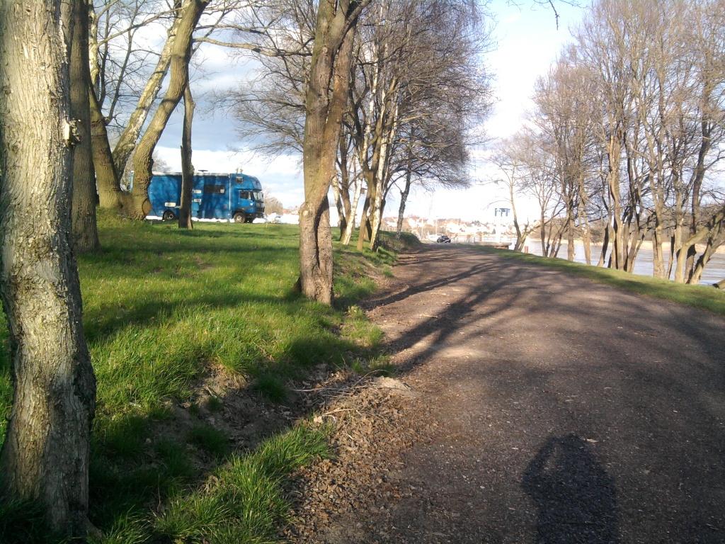 Heidi macht Pause und ich fahre mit dem Fahrrad los mir die Alternativen anzusehen. Weiter stromauf am Käthe Kollwitz Ufer direkt hinter der Albertbrücke gibt es noch einen Platz. Der liegt an der Elbe direkt in der Aue. Hier weicht der Stadtrand wieder etwas von dem Elbufer zurück und lässt einer parkähnlichen Landschaft Raum. Es ist ein riesiger gepflasterter Platz. Ideal für Volksfeste und eben auch für uns. Aber dieses Areal ist aus Naturschutzgründen für jegliche Nutzung gesperrt.