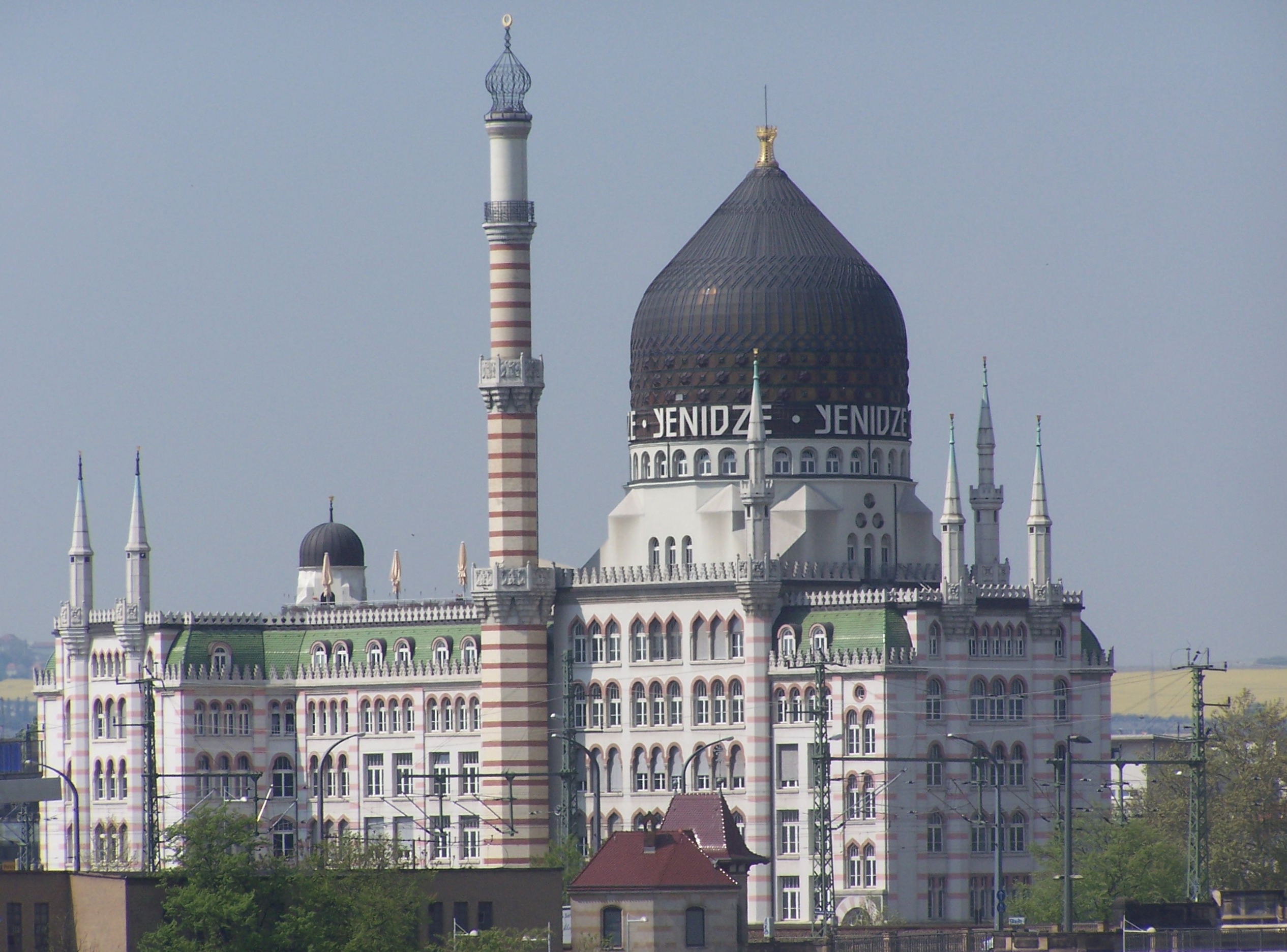 Seit dem wir in Dresden sind, sind wir neugierig auf das Yenidze Haus. Gebaut zwischen 1908 und 1909 von einem Tabak- beziehungsweise Zigarettenhändler im Stil einer Moschee fällt es in jeder Art aus dem Stadtbild heraus. Unterhalb der Kuppel soll eine Gastronomie der Spitzenklasse sein.