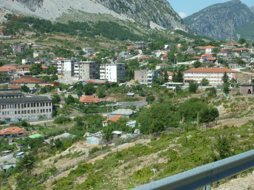 Irgendwann, nach ungefähr sechs Stunden Fahrt für 100 Kilometer kommen wir bei Petran an die Schwefelquellen von Benjë-Novoselë an. Eine Schranke, 200 Lek bezahlen und wir dürfen rein. Hier wird ein „Erlebnispark“ gebaut. Ein Großteil der Flächen werden angepflanzt. Die Parkplätze sind mit Autos, aber vor allem mit den kleinen Minibussen, die Badegäste aus Përmet herankarren, völlig chaotisch zugestellt. Und dazwischen kämpfen die Albaner mit ihrem Auto, dem Überblick und den für sie nicht groß genügenden Parklücken. So klemmen wir uns in eine rein. Das sieht erst einmal nicht nach einem guten Stellplatz aus, aber wir gehen jetzt erst einmal in die Schwefelquellen baden. Wasser so warm wie im Kinderbecken, nachdem 20 Kindergärten reingepullert haben. Angenehm, weil eine steife Briese talaufwärts bläst. Und wie. Und erfrischend.