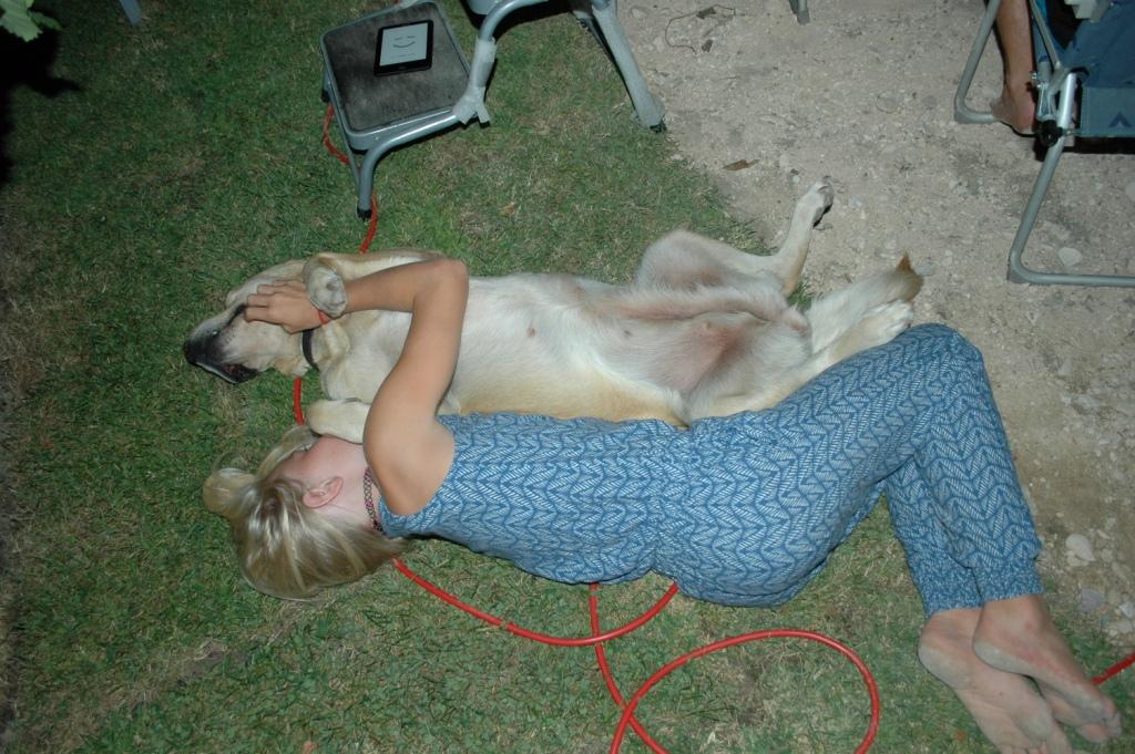 2016-08-18; Camping Gjirokastra 01; Marlene mit Lara 02
