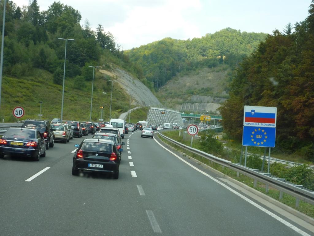 Ab Zagreb geht es dann auf der Autobahn zügig voran. Bei der Einreise nach Slowenien löse ich eine Vignette. Ich bin mir sicher, dass die Frau am Tresen mich falsch bedient hat. Denn eigentlich brauche ich wohl eine GO-Box. Aber das soll mir jetzt egal sein. Das Pickerl an die Windschutzscheibe geklebt und weiter. Bei den immer wieder zu durchfahrenden Mautstationen fahre über die Vignettenspur, obwohl alles über 3,5 Tonnen durch eine Nebenspur muss. Aber wir sind nicht verhaftet worden und auch bei der Ausreise hat die Mautkontrolle die Füße still gehalten.