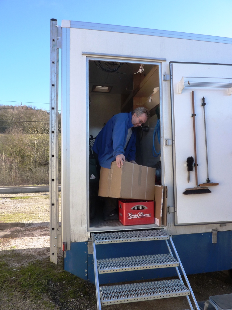 Dann lade ich mit Harry seine Pakete, die ich aus Deutschland mitgebracht habe, aus. Dort ist seine neue Betätigung drin: Werkzeuge zur Schuherstellung. Er will in Zukunft in seiner Lederwerkstatt nicht nur Taschen und Accessoires, sondern auch Schuhe fertigen. So war Harry schon immer (hat Heidi, die mit Harry ja mal zusammen gelebt und das Haus in Buchholz gekauft und saniert hat, erzählt). Kaum ist eine Sache, die er angefangen hat am Laufen, fängt er was Neues an. Immer auf der Such nach neuen Herausforderungen.