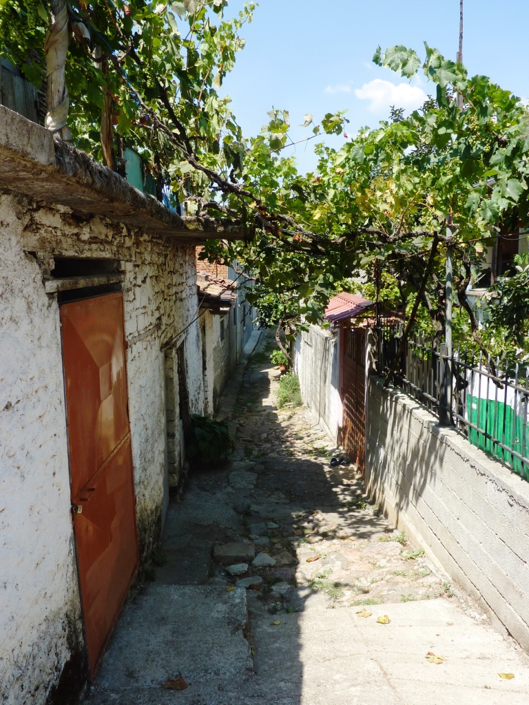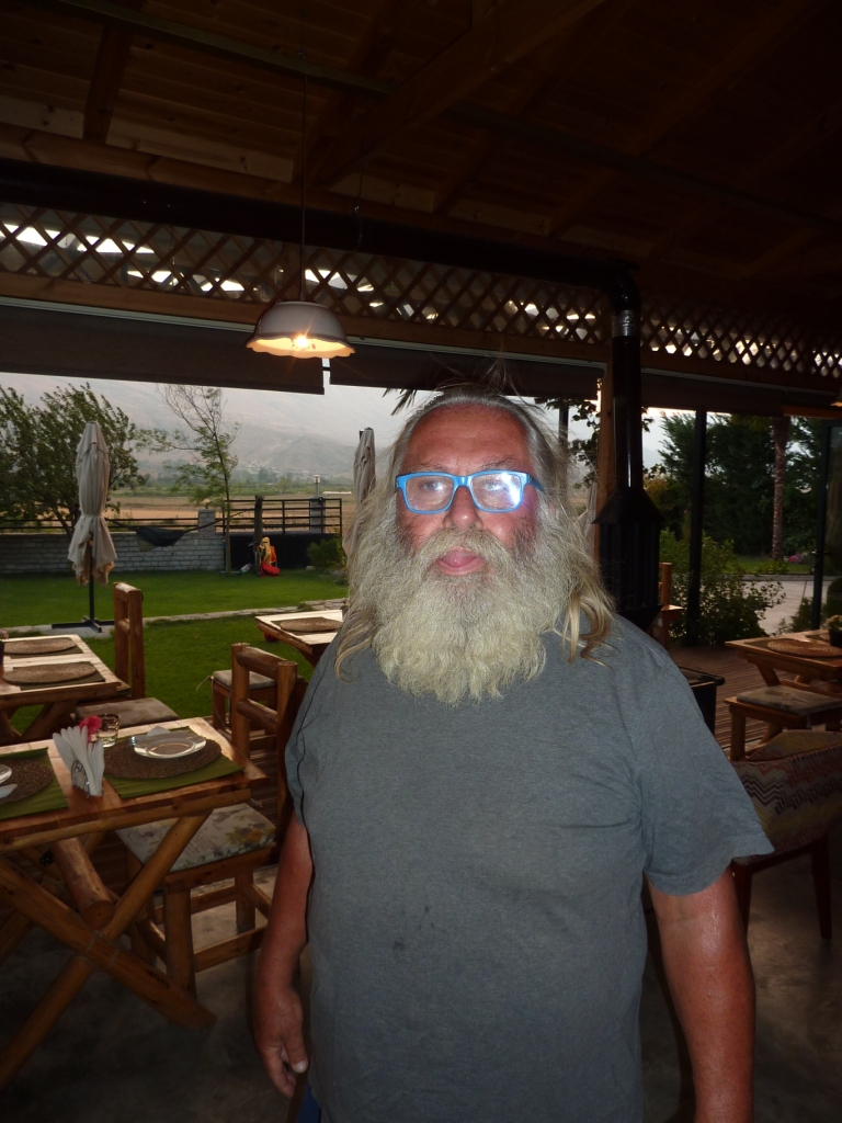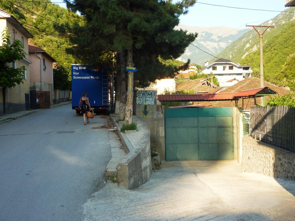 Bei Ankunft war die Einfahrt doch sehr speziell. Gut, mit unseren 2,55 Metern Breite haben wir das gerade noch Hinbekommen. Aber 3,75 Meter Höhe sind in Deutsch und Albanisch gemessen zwei Welten. Das erinnert mich dann doch an unser Erlebnis letztes Jahr am Liqeni i Komanit. Auch dort scheiterten wir an einem aus Weinreben bestehenden Laubengang. Also rückwärts wieder raus aus der steilen Einfahrt. Wir parken dann aus der Straße direkt hinter der Einfahrt.