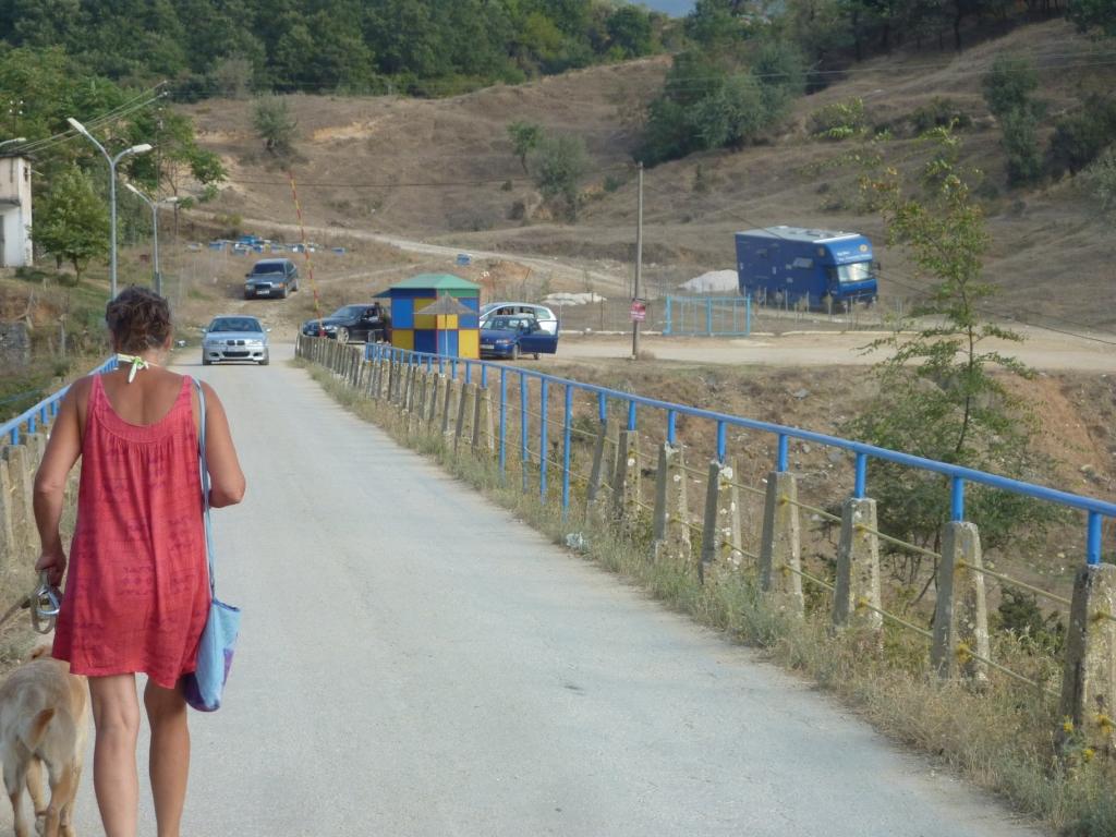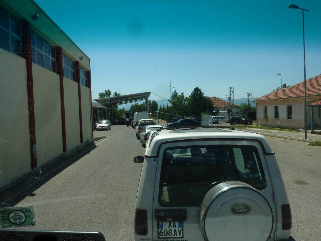 Die Straße SH 6 von Peshkopi angeblich neu. Aber scheinbar nicht in diesem Abschnitt. Macht aber nichts. Sie lässt sich fahren. Manchmal ein bisschen eng. Aber wir kommen gut voran. Es sind bis zur Grenze ja auch nur irgendwas um die 25 Kilometer. Dann die Grenzstation. Erstmals muffelige albanische Grenzer. Die Arbeit haben die nicht erfunden. Es dauert. Zehn Autos, 30 Minuten. Und das erste Mal, dass wir wirklich alles aufmachen müssen. Und in den Wohnbereich traut der Zöllner nicht rein. Lara steht im Weg. Aber irgendwann hat er begriffen, bei uns gibt’s kein Bier und er lässt und fahren. Auf der mazedonischen Seite auch Warten ohne sichtbaren Grund. Und hier werde ich an die DDR-Abfertigungen von früher erinnert. Die Polizei hat uns auf die LKW-Spur gewunken und abgestellt. Die Papier bekommen wir irgendwann wieder mit dem Hinweis zur Zollabfertigung zu gehen. Die ist vier Meter weiter. Ich gehe zu der Frau hin. Aber sie bedeutet mich, die vier Meter vorzufahren, da sonst keine Abfertigung möglich sein. Oh Herr lass Hirn regnen!