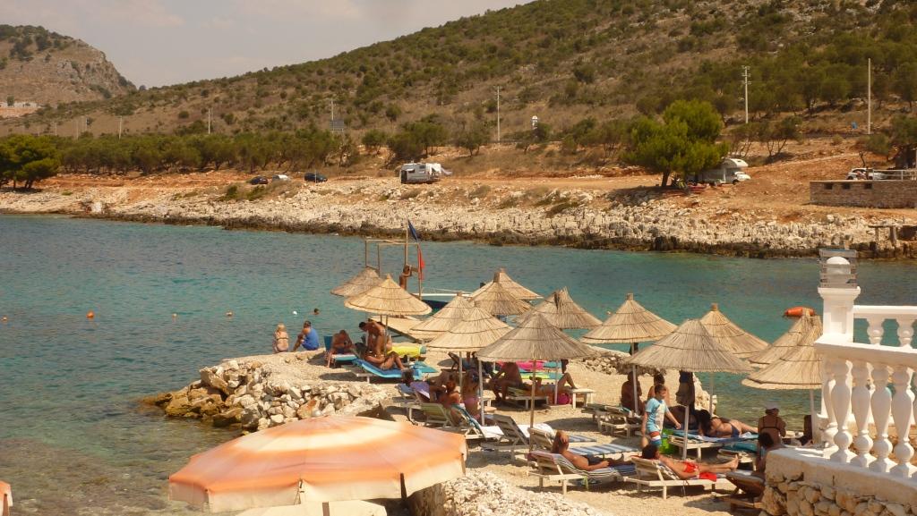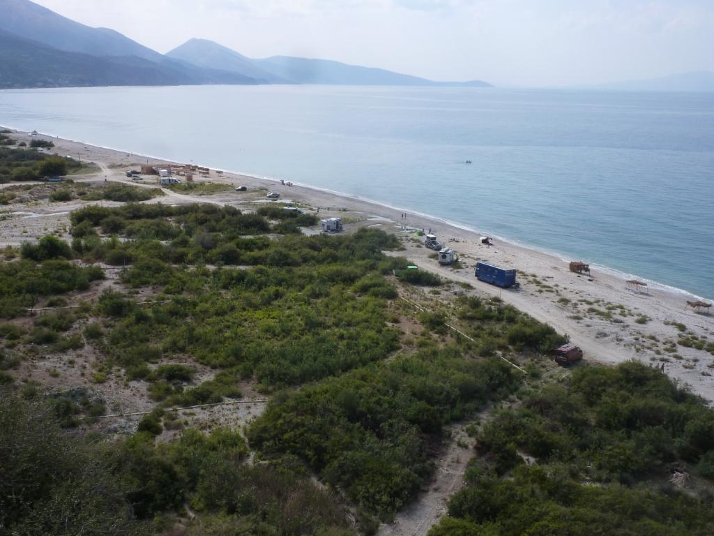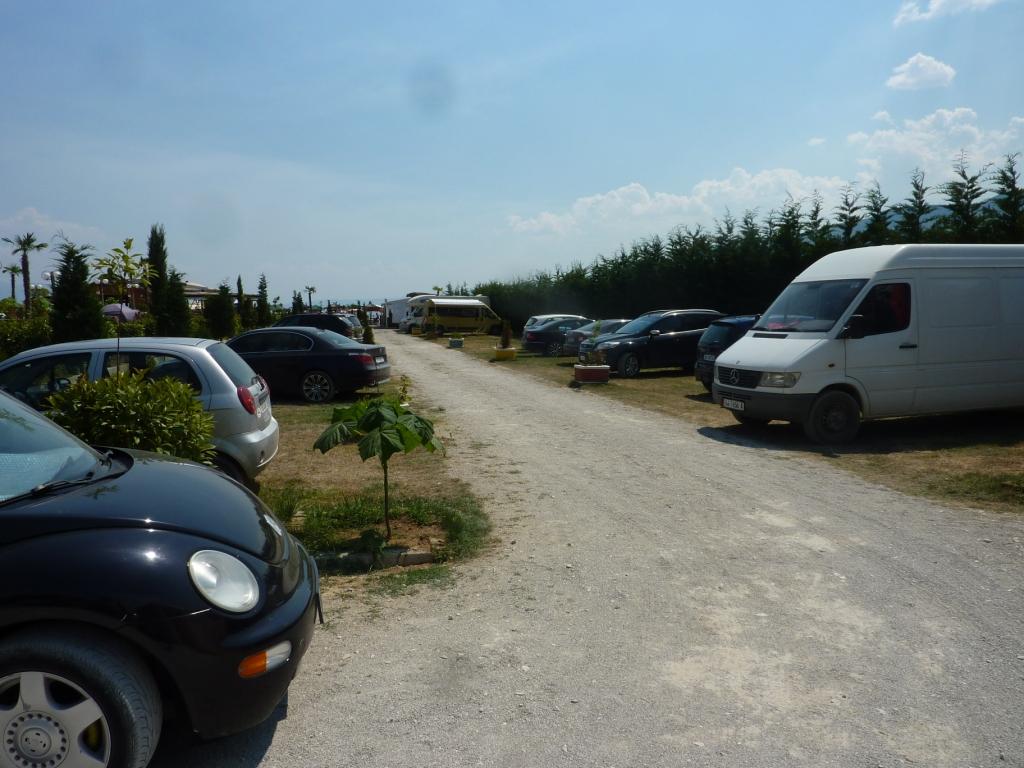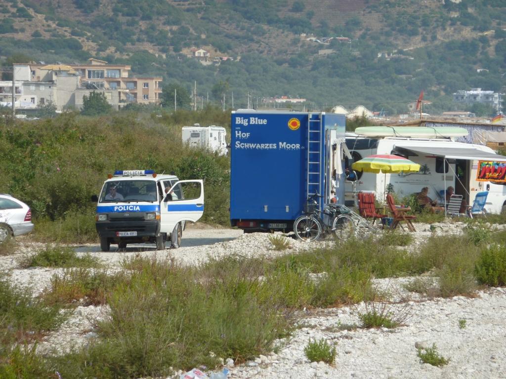 Dabei schauen wir uns noch den Campingplatz Erlin an. Von dem haben wir schon viel gehört. Tja. Zaun drum und Wohnmobilstellplätze in Parklücken im Parkplatzstil. Und nebendran ein großes Restaurant mit viel und lauter Musik. Das Ganze ist eingebunden in ein Konglomerat an Freizeiteinrichtungen bis hin zu einem Spa und Relax Resort am Ende der Straße. Das hat mit dem originären Leben der Albaner nicht mehr viel zu tun. Das hier ist ein Ort für Touristen, die unterhalten werden wollen und einen Sicherheit vermittelnden Zaun um sich rum brauchen. Da sind wir auf unserem Rei zufriedener! Aber jeder so, wie er es braucht.