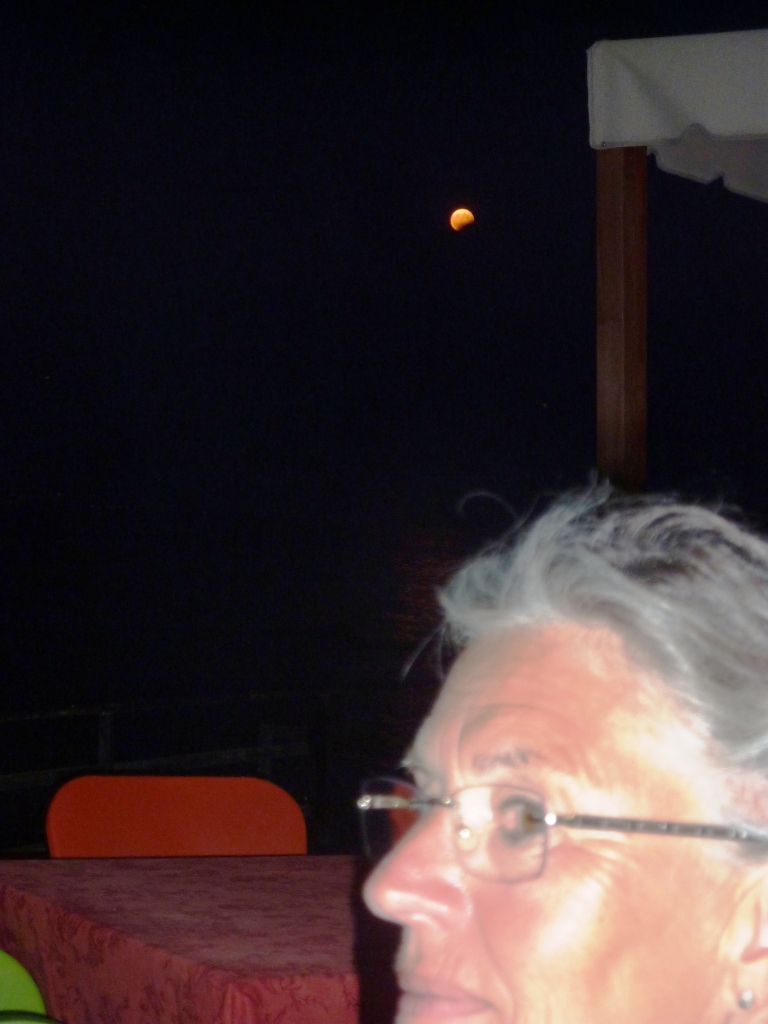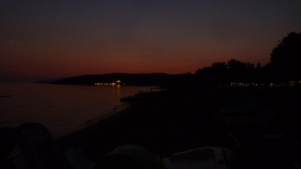 Ich habe heute Nacht draußen geschlafen. Auf einer Sonnenliege direkt am Wasser. Es war gestern Abend eine so stickige Luft – den ganzen Tag brannte die Sonne und ab 17:00 Uhr zog es sich mit Wolken zu -, dass ich es drinnen, vor allem nach unserem guten Essen hier im Restaurant einfach nicht in den Schlaf kam. Kaum war ich draußen, riss der Himmel auf, es kam ein seichter Wind auf und die Luft kühlte sofort auf ein erträgliches Maß ab. So habe ich, als dann um circa 2:00 Uhr mal wach wurde, Unmengen an Sternschnuppen beobachten können.