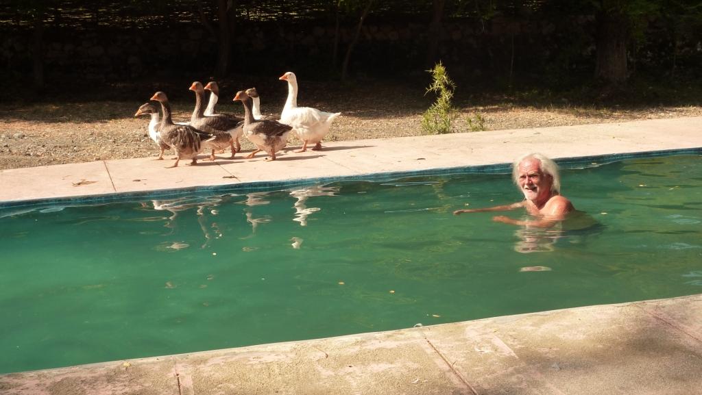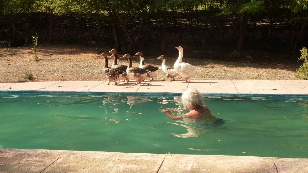 Wir verdaddeln den heutigen Tag. Der Versuch nach dem Frühstück mal in die Berge zu wandern, scheiterte an den Temperaturen. Und dem für lange Strecken abwesenden Schatten. Und das schon in den Vormittagsstunden. Also bleibt nur der Pool. Den erkämpfen wir uns von den Gänsen zurück.
