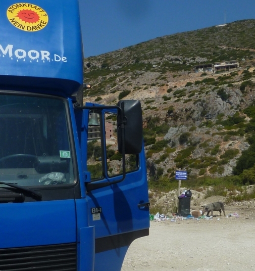 • Ich sehe heute eine mobile Betonpumpe am Campingplatz vorbei fahren. Da fällt mir ein Zitat eines Freundes von vor 35 Jahren ein. Er, als einer, der schon damals auf Naxos heimisch geworden ist, hat zu jener Zeit schon erkannt, dass mit dem Auftreten dieser großen Baumaschinen endgültig die Veränderungen im Land unumkehrbar werden.