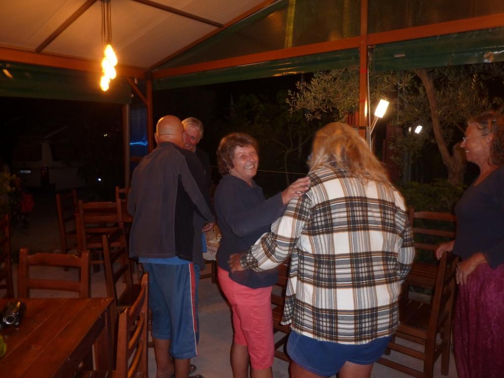 Die Beiden gehen früher ins Bett und nun wird das Ganze wieder zu einer Abschiedsfeier von Marko, Alberto und uns. Essen, Wein und dann Raki. Den vor allem zum Probieren, denn von dem wollen wir morgen eine ganze Menge mitnehmen. An diesem Abend hinterlässt der recht leere – es ist unübersehbar Nachsaison – aber trotzdem illuminierte Platz mit seinen bewachsenen Terrassen wieder wehmütige Gefühle. Auch hier fällt der Abschied schwer.