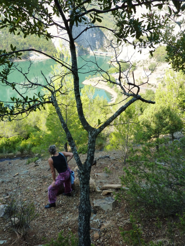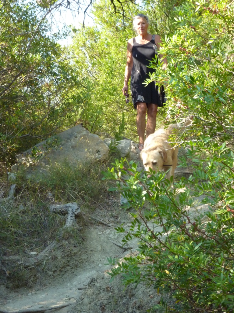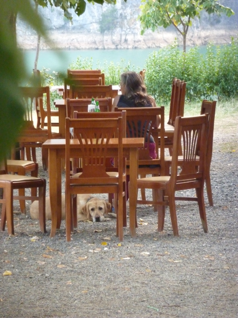 An unserem Stellplatz zurück gehen wir wieder den Notwendigkeiten des Tages nach: Schwimmen mit dem Hund, Schatten suchen, Bier bestellen (aber heute vergisst der Kellner es irgendwie) und Tagebuch schreiben. Und dann von vorne.