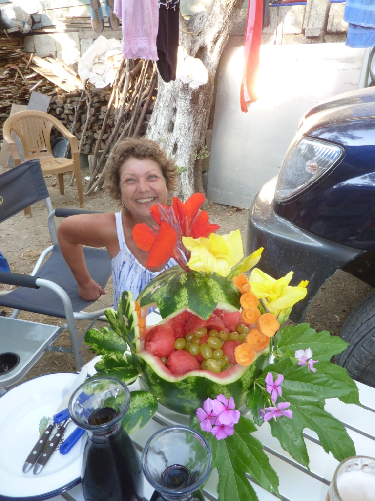 Zurück auf unserem Lagerplatz bringt uns Aleks (einer der Jungs aus dem Restaurant) einen Obstteller.