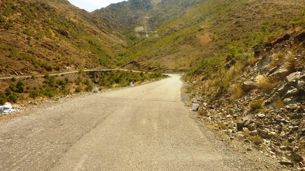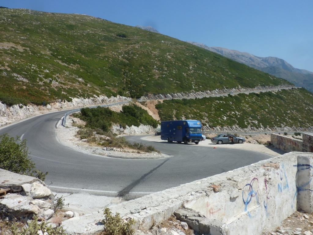 So geht’s weiter. Die Grenze wieder nach Albanien rein ist hier etwas geschmeidiger. Aber der Berg hoch zur Grenzstation fordert von Big Blue bei den heutigen Temperaturen einiges. Kühlwassertemperatur bei Ankunft am Grenzhäuschen 98°C. Geht aber gleich wieder runter.