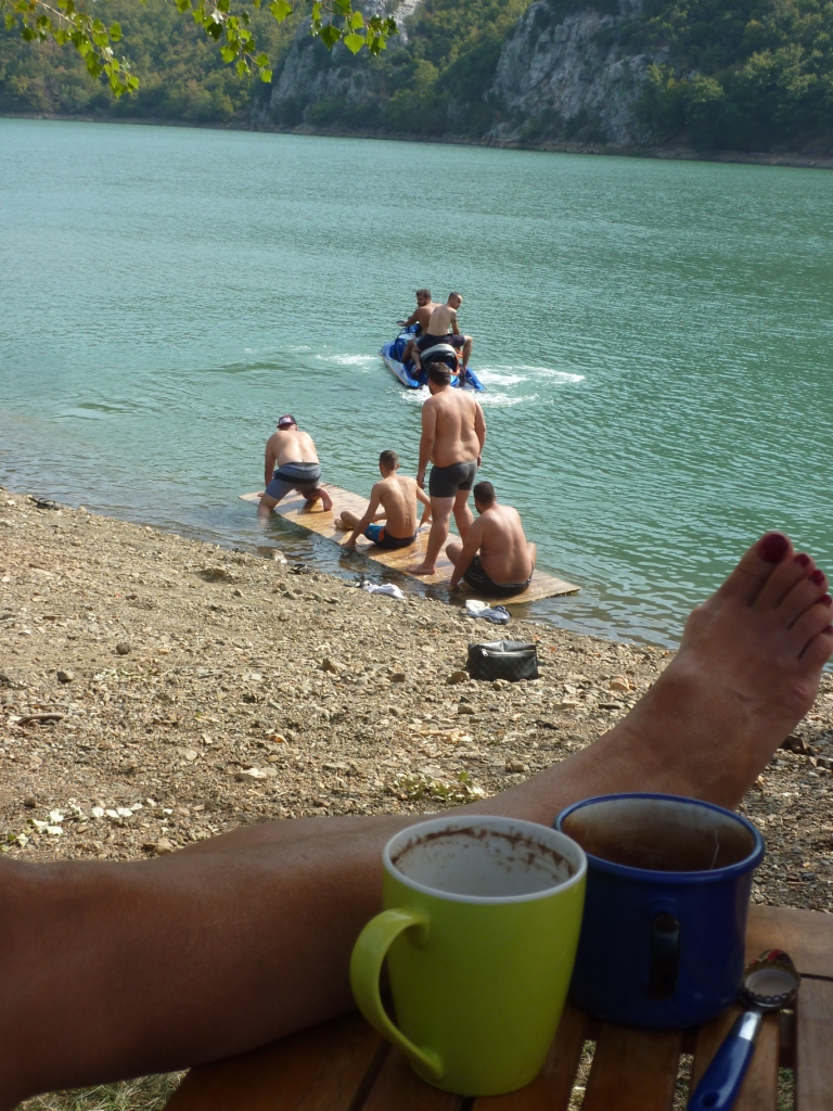 Dann geht es zügig über die 1202 und 1201 zügig Richtung Ohridsee. Auch die Ausschilderung ist zielführend. Wir passieren einen recht langen Stausee. Den Lake Debar. Hier finden wir mehrere Plätze, die sich hervorragend zum Übernachten und Baden eignen. Bei unseren Stopps haben wir auch sofort Kaffeeeinladungen der Anwohner am Hals.