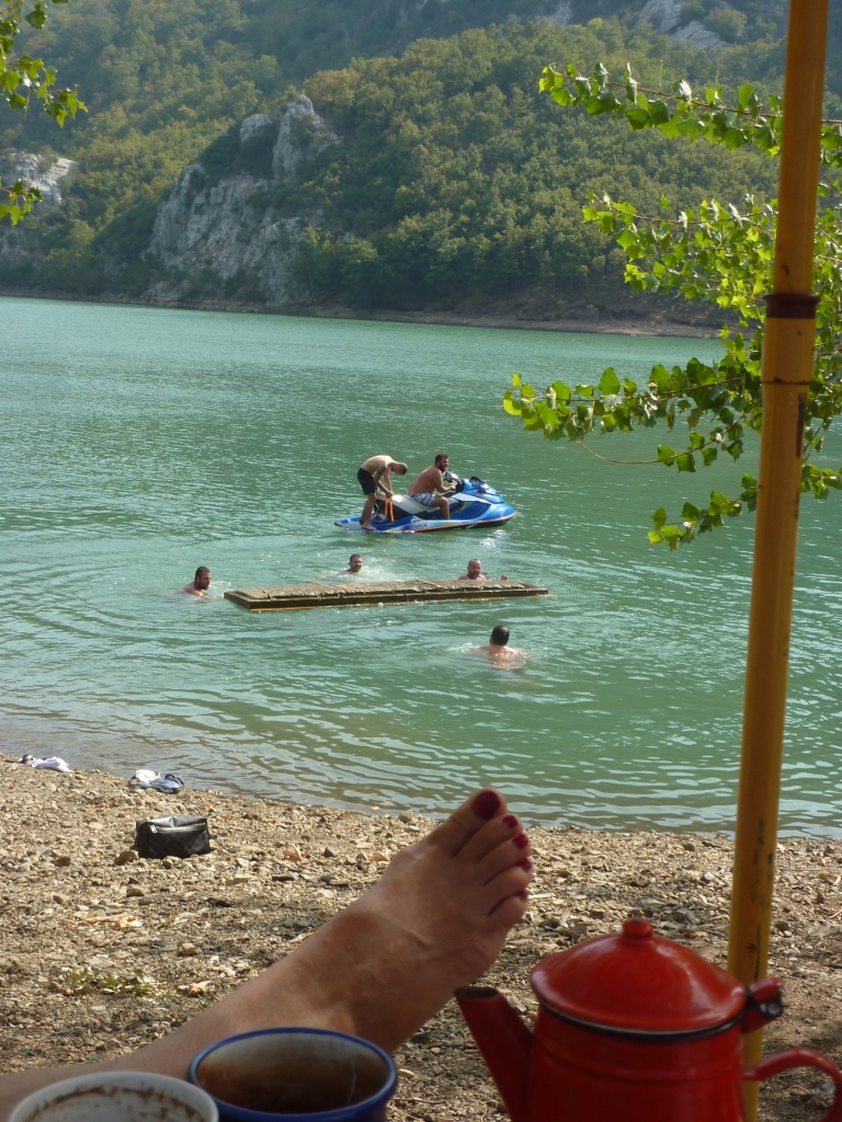 Die Fahrt heute ist unspektakulär. Wir haben uns entschieden die einfache Route über Mazedonien zu nehmen. Die Route auf albanischer Seite durch das Naturreservat wäre natürlich auch interessant. Aber nicht nur Lara schreit nach Wasser. Wasser zum Reinspringen, Planschen und Schwimmen.