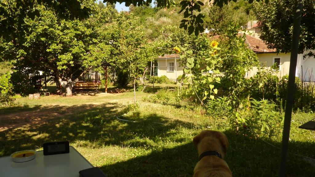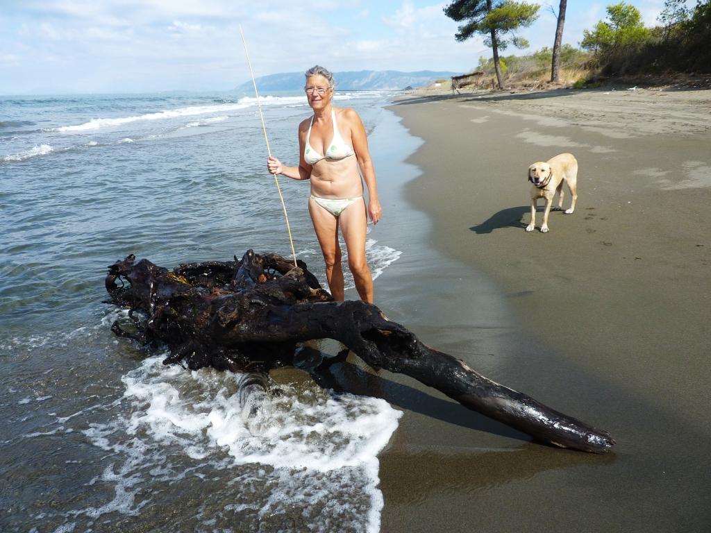Bis 9:00 Uhr schlafen. Dann frühstücken, mit dem Hund eine Runde gehen, die erste Schildkröte treffen, Baden, die Leute beobachten, der Platz und das Restaurant füllen sich, Baden, E-Mails checken, Tagebuch schreiben, sechs Ordner mit alten Gebrauchsanweisungen seit 30 Jahren durchsortieren und ausmisten, Baden, Salat mit Tsatsiki essen, Baden, mit dem Hund gehen, Postkarten schreiben.