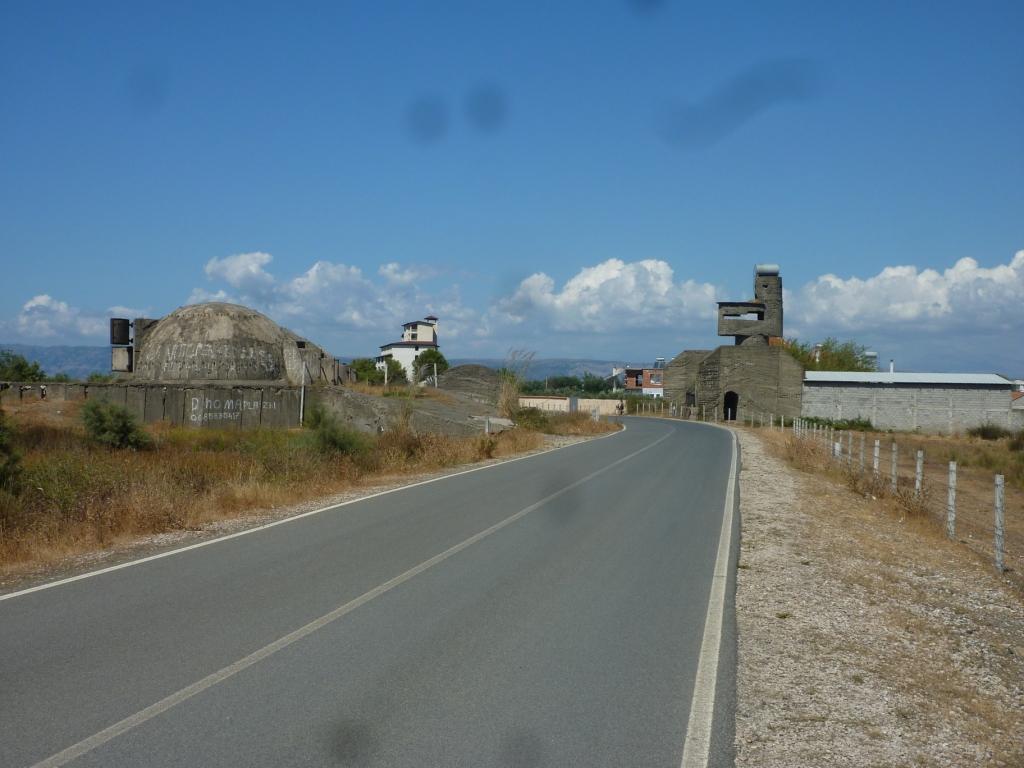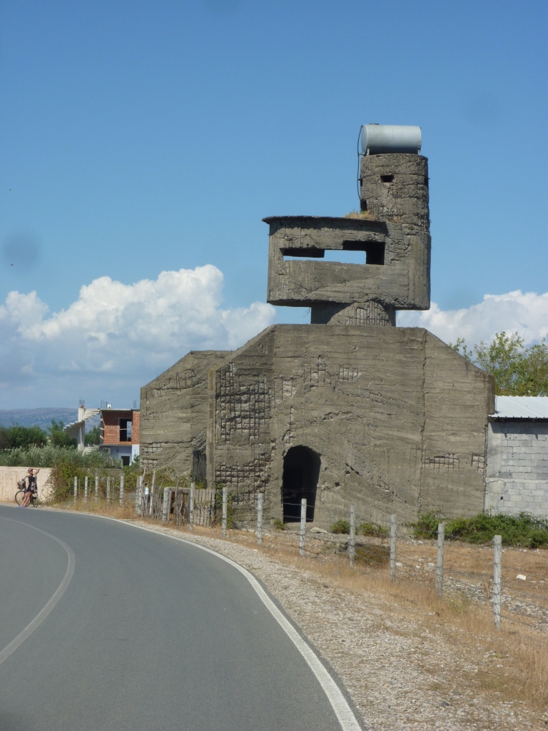 Mit dem Fahrrad besuchen wir noch eine Bunkeranlage aus der Enver Hoxha Ära. Den Wachturm haben wohl Regisseure für Star Treck als Vorlage genommen.