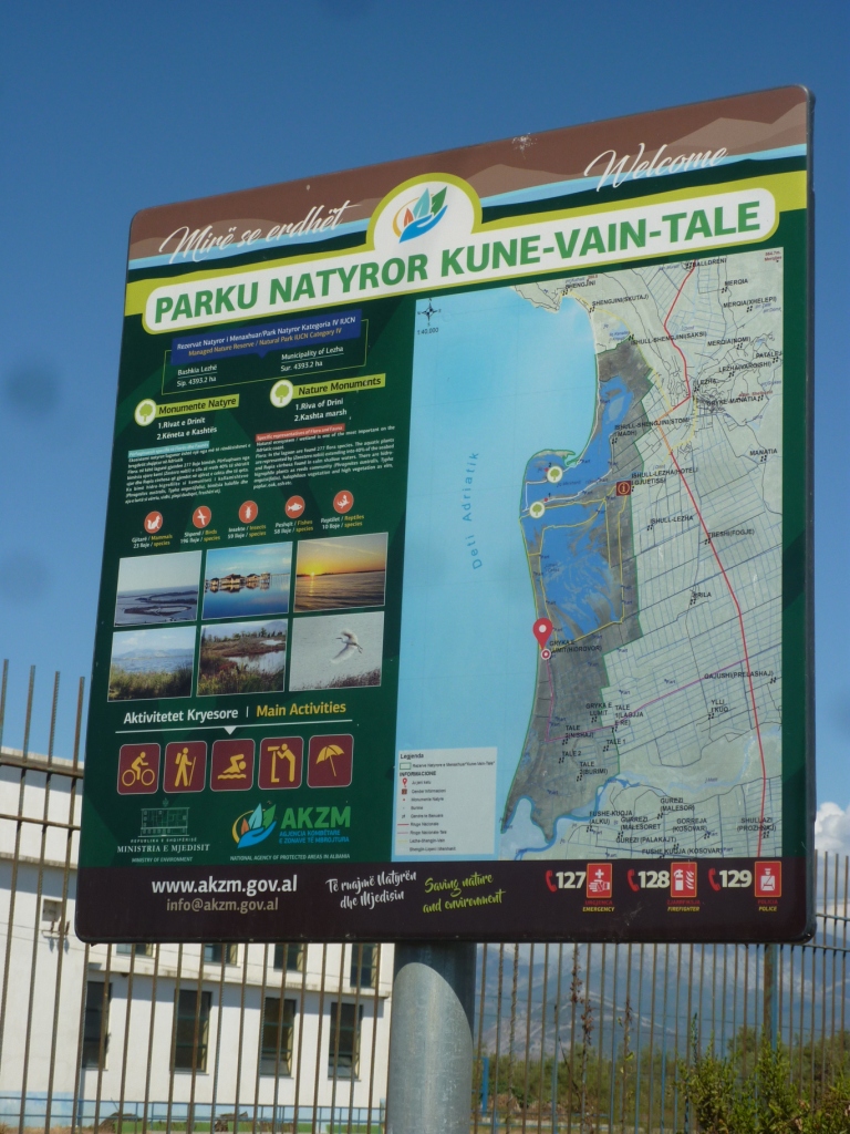 Dann fahren wir in den Ort auf einen der Plätze und suchen uns an einer Sackgasse unter Bäumen einen schattigen Platz. Albanien Telekom und eine Bank haben wir schon entdeckt. Also Geld ziehen und dann endlich eine Simkarte für das Handy/den W-LAN Router. Das geht auch alles recht unspektakulär. Aber im Nachhinein zeigt sich erstens, die versprochene englisch Gebrauchsanweisung besteht eben nur aus einer albanischen. Und die verstehe ich mal wieder nicht und vielleicht bin ich auch nur zu dumm. Mit dem PIN die Karte entsperrt und es gibt auch die Anzeige, dass das Netz vorhanden ist. Aber trotzdem kein Internetzugang. Also morgen früh noch einmal hin und helfen lassen. Für mich ist jetzt die Entscheidung für die Zukunft gefallen: Zu Hause einen Datenvertrag für den W-LAN Router abschließen, der zumindest in ganz Europa gilt. Diesen Scheiß mit den Prepaid Karten, das tun wir uns nicht mehr rein!