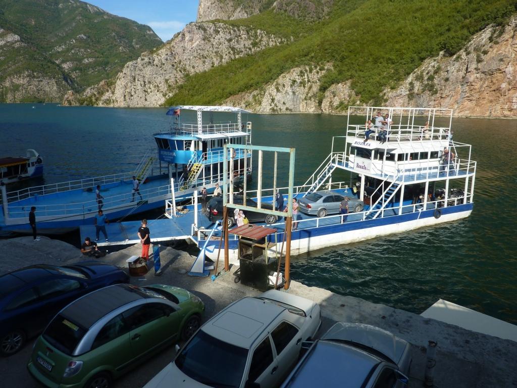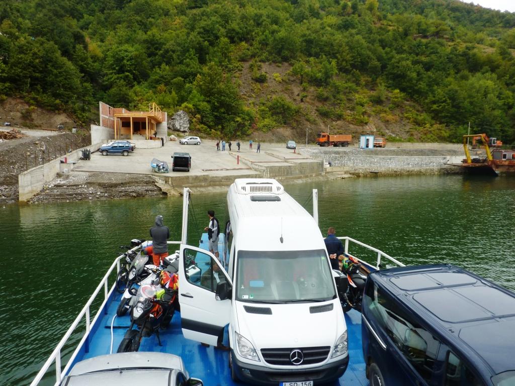 Erika und Michael, die Beiden aus dem T3, nehmen uns noch einmal mit zum Fähranleger hoch. Sie wollen mit der Fähre nach Fierza und dann weiter ins Valbonëtal. Endlich können wir mal jemanden an der Fähre verabschieden.