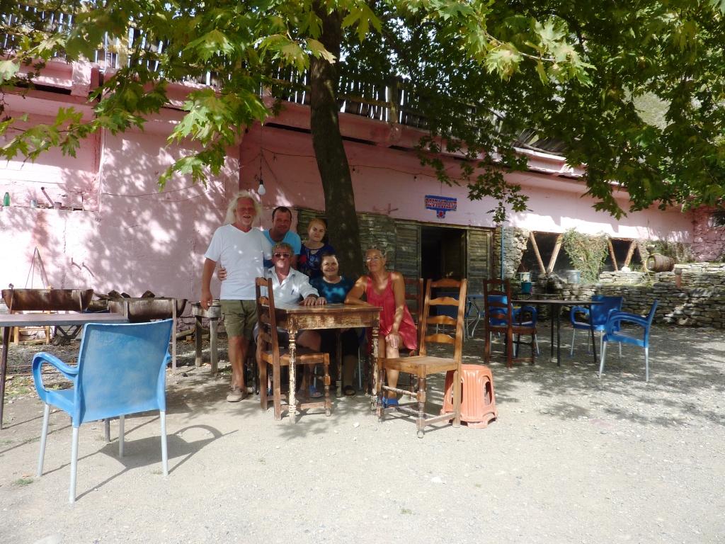 Gegen 20:00 Uhr füllt sich der Platz mit albanischen Männern, die hier in den Hotelzimmern unter der Brücke wohnen. Sie trinken Raki und essen Markos Leckereien. Sie haben Feierabend. Höchstwahrscheinlich arbeiten sie hier im Wasserkraftwerk. Dort wird gebaut. In dieses Werk wird zurzeit wohl richtig investiert. Anders als in das Kraftwerk am Shkopet Stausee. Das haben ja die Türken übernommen. Und dort hatten wir den Eindruck, als ob diese hier eine Restnutzung vornehmen um noch einmal richtig Kohle zu machen und nach ihnen die Sintflut.