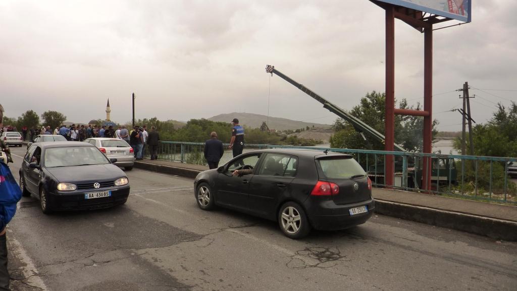 Dabei können wir die Bergung eines PKW aus dem Fluss beobachten, der heute Morgen da von der Brücke aus reingefallen ist. Das ist unser erster erlebter Unfall in den zwei Jahren Albanien. Polizei ist in Unmengen vor Ort. Und sie tun, was sie immer tun. Sie stehen auf der Brücke rum, wedeln unkontrolliert mit ihren Kellen, trillern auf ihren Pfeifen und bringen den Verkehr fast vollständig zum Erliegen. Der Unfall selbst und die Bergung hätte diese „Verkehrslenker“ nicht benötigt.