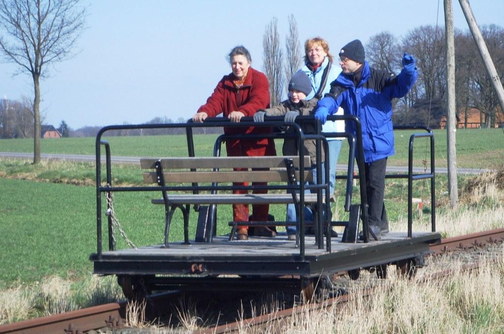 Die Wietzener Landjugend hat in einer 72-Stunden Aktion auf unserer stillgelegten Bahnlinie eine Draisinenstrecke errichtet. Gegen eine kleine Spende an den Wietzener Heimatverein (##) könnt ihr den Schlüssel dafür bekommen.