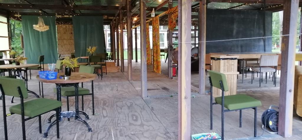 Heute Abend gibt es nach einem Rundgang auf dem Gelände auch mal wieder Eier zum geschmorten Gemüse als Abendmahl. Aber erst noch einmal zurück zum Rundgang. Neben den schon oben erwähnten Gebäuden und (Übernachtungs-) Möglichkeiten haben die BetreiberInnen hier auch vieles geschaffen, welches ein Zusammentreffen mit anderen Gästen – und auch Bewohnern – fördert. Eine riesige überdachte Terrasse, Sitzgruppen auf dem Gelände und im Wald, Hängematten und vieles mehr. Wenn es nicht so nass draußen wäre, dann würden diese Dinge sicherlich auch heute genutzt werden. So hänge ich hier alleine ab.