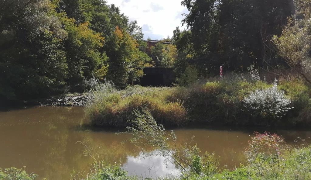 Nachdem ich meinen Platz auf der Wiese bezogen habe, mache ich mich mit dem Fahrrad auf den Weg entlang des Grenzflusses.