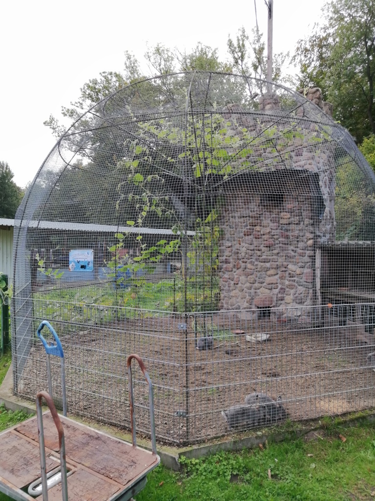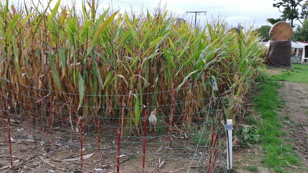 Irgendwann beordert seine Familie zurück. Er muss wohl noch was arbeiten. (Ist ja wie zu Hause. Da achtet Heidi auch immer drauf, dass ich meine Arbeit nicht vergesse.) So habe ich noch Zeit im Wald nach Pilzen zu suchen. Ist aber ganz mau. Nichts zu finden. So erkunde ich das Labyrinth. Ich finde neben dem eigentlichen Labyrinth hier ein Sauengehege und freilaufende Hühner im Mais. Eine Outdoor Modelleisenbahn, ein Tiny Haus mit Heißbadefass, ein Fahrrad- und Go-Cart Parkour und einiges mehr. Und überall Sitzecken zum Verweilen und um sich mit (auch mitgebrachtem) Essen zu stärken. Für Familien mit Kindern bestimmt ein schönes Wochenenderlebnis.