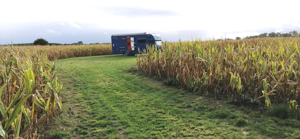 Wir unterhalten uns recht lange über sein Maislabyrinth bei einem Tee in Big Blue. Mich wundert, dass es immer noch aufgebaut ist und an den Wochenenden immer noch Veranstaltungen stattfinden. Überall woanders ist der Mais ja schon runtergehäckselt. Aber dieses, mit vielfältigen weiteren Freizeitaktivitäten und Verköstigung aufgewertete, Angebot ist wohl ein Betriebsteil mit nicht unerheblichem Anteil an seinem betrieblichen Einkommen. Aber ich bin froh, dass ich hier an einem Tag aufgeschlagen bin, an dem Ruhetag ist. Der Trubel wäre ja – wie ihr ja sicherlich schon mitbekommen habt – nichts für mich.