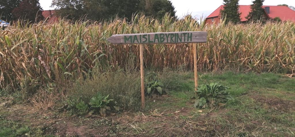 Auf dem Hof irre ich erst einmal recht verloren herum, bis ich den Haupteingang gefunden habe. Irgendwie habe ich Hinnerk wohl gerade vom Mittagstisch geholt oder beim Mittagsschlaf gestört. Er bietet mir die verschiedensten Stellmöglichkeiten an. Ich finde die Plätze im Maislabyrinth am prickelnsten. Für den Fall, dass ich mich dort festfahre verspricht er mir, mich mit einem seiner Trecker zu retten. Aber die festgefahrenen Grasnarben tragen. Also keine Gefahr.