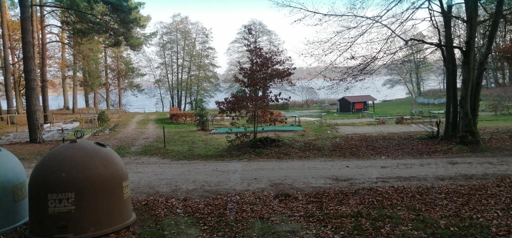 Der Campingplatz ist natürlich geschlossen. Wie – wie mir später von Helmut auch bestätigt wird – fast alle Stell- und Campingplätze hier auf der Seenplatte. Aber ein Rundgang lässt das Konzept des Platzes erahnen: Eine Vermischung von Bauwagen-, Zelt-, Dachzelt, Wohnwagen- und Wohnmobilplatz. Die einzelnen „Parzellen“ sind wunderbar in die Natur hier eingepasst. Ergänzt wird das Angebot durch Kanuvermietung und verschiedene andere Freizeitaktivitäten. Nicht ganz billig, aber sicherlich eine passende Alternative für so Leute wie mich/uns.