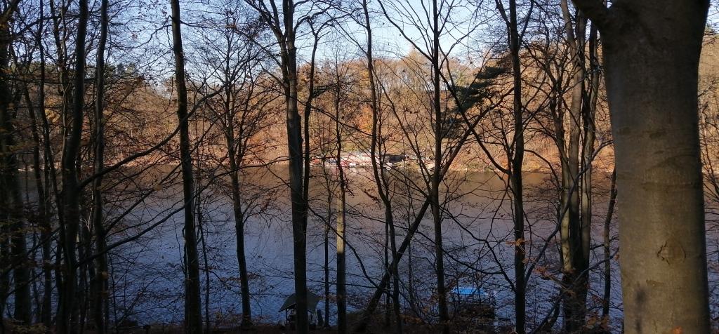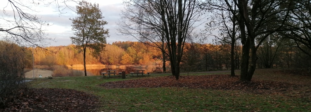 Mit Sonnenuntergang, der die herbstlich verfärbten Waldränder am gegenüberliegenden Ufer so richtig zur Geltung kommen lässt, bin ich zurück auf dem Parkplatz und ich kann beobachten, dass ein Eintrag bei p4n scheinbar seine Richtigkeit hat. Hier verabreden sich entweder Menschen, die auf ein Date aus sind oder aber hier werden Drogen gehandelt. Naja, sollen sie machen.