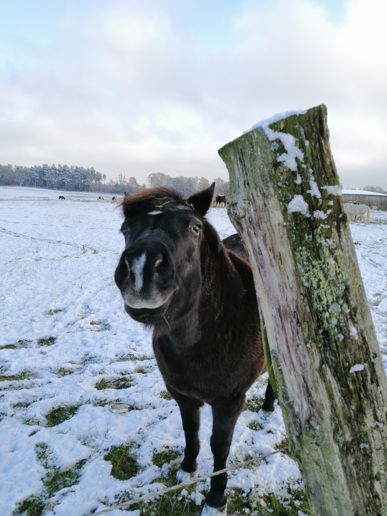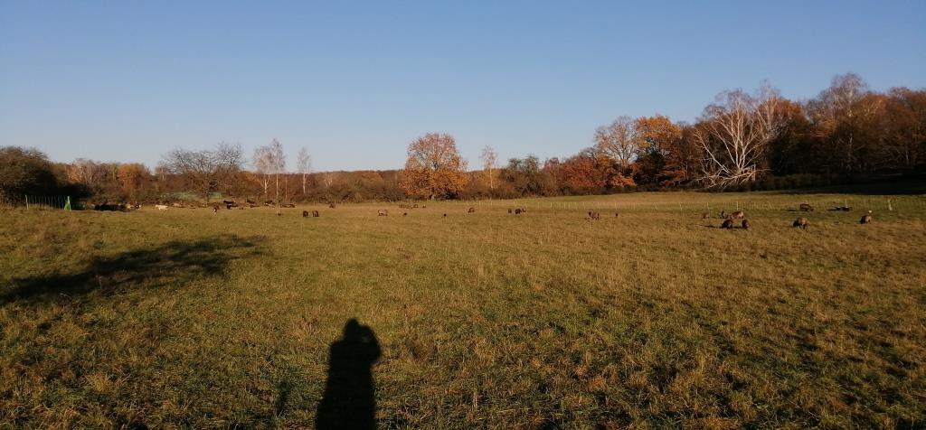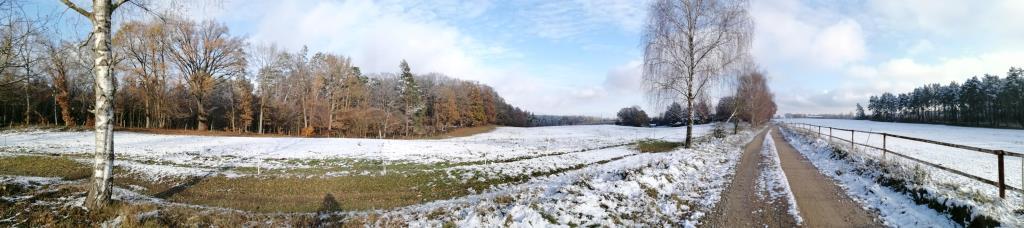 So ausgestattet kann ich mich entspannt auf eine (Wald-) Wanderung begeben. Bei immer noch blauem Himmel ist es zwischen den Weiden und Feldern schon fast richtig warm. Aber im Schatten des Waldes merke ich schon, dass es Winter wird. Irgendwann zieht es sich zu und es sieht nach Schnee aus.