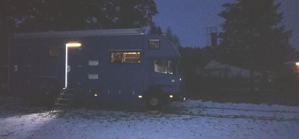 Schon im Dunkeln rangiere ich auf unseren Hof. Wie immer nicht ganz einfach.