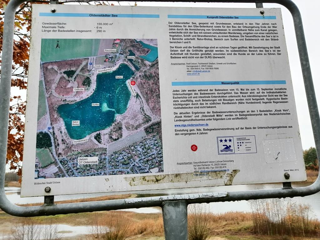 Heute Morgen erfahre ich, dass am Samstag zuhause eine Beerdigung stattfindet, zu der es für mich, nicht nur aus Respekt der verstorbenen Person gegenüber ein Bedürfnis ist, daran teilzunehmen. So mache ich mich doch heute schon weiter in Richtung Westen auf. Der Elbe-Seitenkanal auf der Strecke zwischen Bad Bevensen und Uelzen soll meine nächste Übernachtung werden. Allerdings finde ich dort nichts, was mich anspricht. In einer Marina eines Yachtvereins würde ich zwischen den Booten, die für das Winterlager aus dem Wasser geholt sind, stehen. Das ist nicht so prickelnd. So entscheide ich mich für den Oldenstädter See. Direkt neben dem Elbe-Seitenkanal.