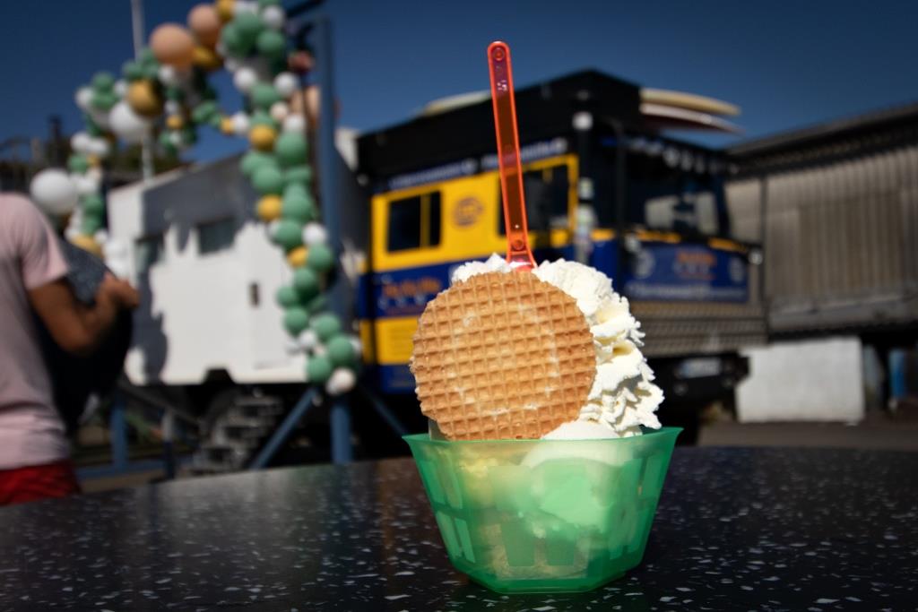 Bei Temperaturen um die 38°C genieße ich die Reiseberichte, die technischen Vorführungen, den Mutzbraten und das Eis Auto.