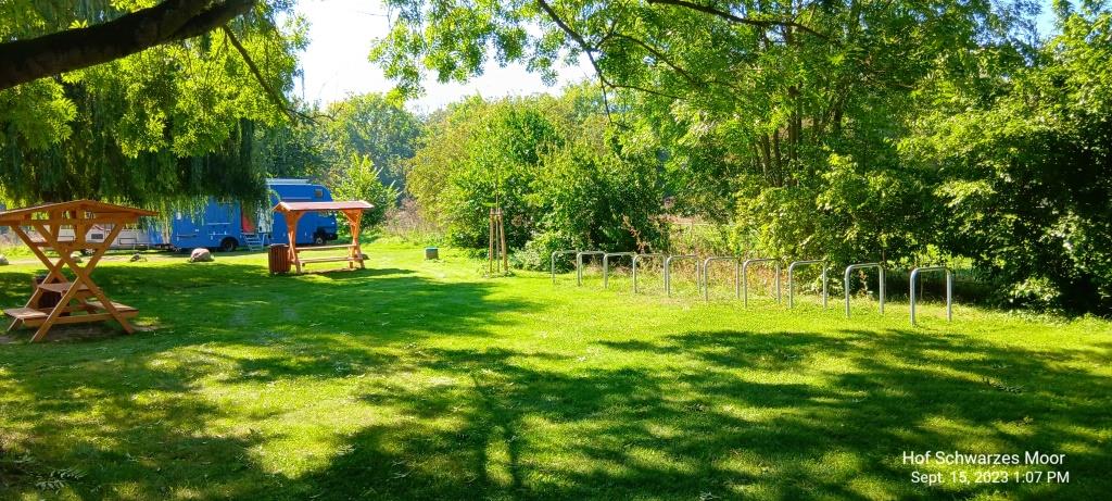 Tipps für unsere Selbstversorger: Hier findet ihr in direkter Nähe des Stellplatzes Kirsch- und Apfelbäume. Am Waldrand wachsen Brom- und Preiselbeeren.