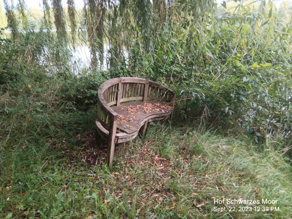 Aber der Reihe nach. Dieser See ist klein, aber mir unwahrscheinlich viel Liebe angelegt. Der Kiosk mit Sanitäranlagen hat schon saisonbedingt zu. Aber es bestände die Möglichkeit, sich bei der Gemeinde einen Schlüssel dafür zu holen. Am Ufer sind verschiedene Sitz- und Liegemöglichkeiten aufgebaut, die von den Einheimischen auch lustig in der Gegend herumgetragen werden. Die gesamte Biergarten Bestuhlung am Kiosk steht noch allen zur Verfügung und ist nicht (!) angekettet. Und trotzdem noch nichts geklaut.