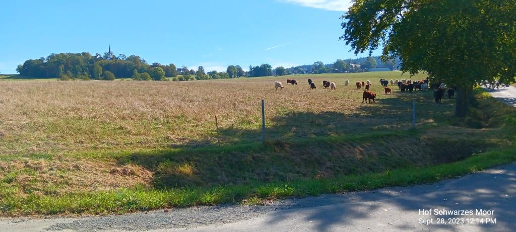 Wiederum eine wunderschöne Gegend, die ich hier durchfahre. Die Straßen sind zwar teilweise nur knapp (!) zweispurig (die Oberfranken sind halt sparsame Menschen und vergeuden beim Straßenbau weder Asphalt noch Natur) und bei entgegenkommenden LKW oder (Linien-) Bussen verringern sogar die einheimischen FahrerInnen ihre Geschwindigkeit. Aber ich habe es mir ja so ausgesucht: Keine Autobahnen und wenn es geht auch keine Bundestraßen.