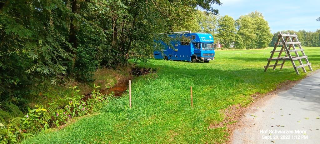 Bei Ankunft auf Torstens und Andreas Anwesen überkommen mich recht schnell Zweifel, was das Herbsttreffen, Indian Summer genannt, betrifft. Irgendwie stehen hier nur drei Wohnmobile, die hier wohl schon länger stehen. Also kein typisches Reisenden-Treffen Ambiente. Nach kurzer Suche nach den „Verantwortlichen“ wird klar: Dieses Jahr gibt es kein Herbsttreffen. Trotzdem beziehe ich meinen üblichen Standplatz, da mir bei den drei anderen Gästen zu viele Hunde rumlaufen und ich doch mehr die Ruhe suche.