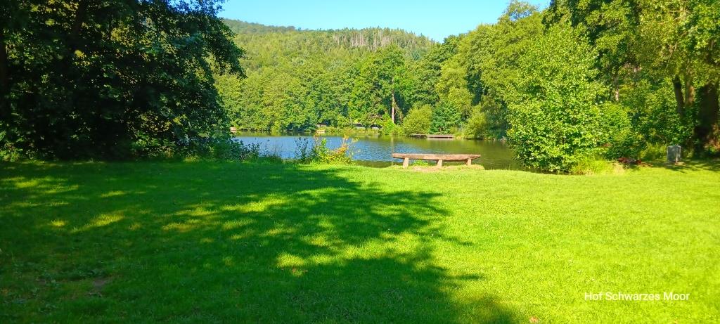 So fahre ich – jetzt wieder auf der B3 weiter nach Bad Zwesten, genauer nach Oberuff. Dort an den kleinen Waldsee. Auf dem Wanderparkplatz ist genug Platz, auch für den nicht gerade kleinen Big Blue.