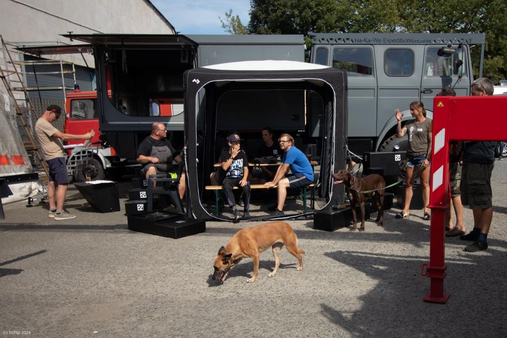 Der Kumpel unseres Verletzten ist auch schon dagewesen und hat die Hündin abgeholt und räumt jetzt den Wohnkastenwagen aus.