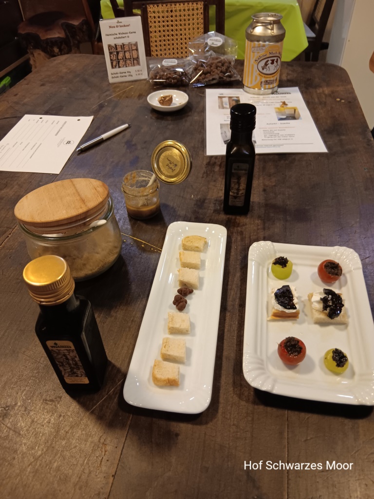 Aber auch hier sind die Nachsaison und das Wetter nicht zu übersehen. Wir sind hier zu dritt. Ein Gast hier hat Kistenweise Walnüsse gesammelt und ist sie jetzt in mehreren Kisten am Trocknen. Da hat er dann für den Winter genug. Das reicht dann auch noch für unterm Weihnachtsbaum – „Apfel, Nuss und Mandelkern mögen alle Enkel gern.“