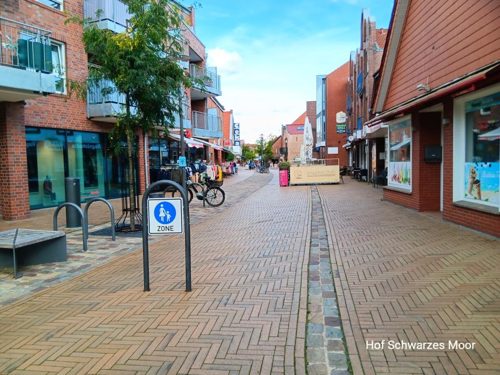 Meine Erkundung des Ortes mit dem Rad ist auch vielversprechend. Im Gegensatz zu Lingen finde ich hier eine recht ansprechende Innenstadt mit ausgeprägter Fußgängerzone vor. Auch hier dominieren Gastronomie und (Lebensmittel-) Läden von Betreibern mit Migrationshintergrund. Dazu gehören auch italienische Eisdielen (Ohne diese Mitbürger würde es hier ganz schön verlassen aussehen). Die am Kirchplatz habe ich dann schon mal für morgen vorgemerkt.