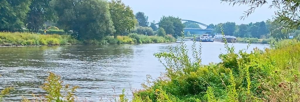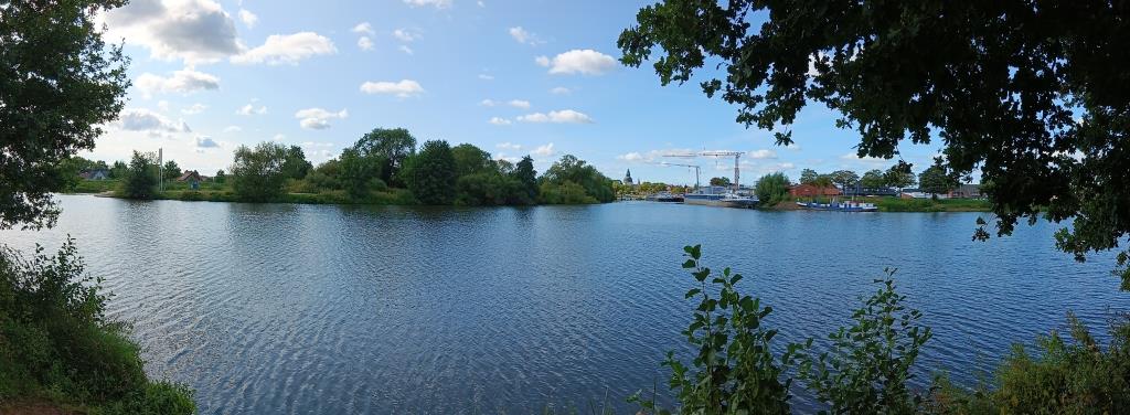 Heute starte ich den Tag mit der Erkundung der anderen Ems Seite – natürlich per Rad. Ein sehr schöner (Rad-) Wanderweg verläuft nahezu ständig am Flussufer entlang. Auch hier befindet sich noch ein alter Ems Arm in dem eine Marina und eine Werft für die Berufsschifffahrt angesiedelt.