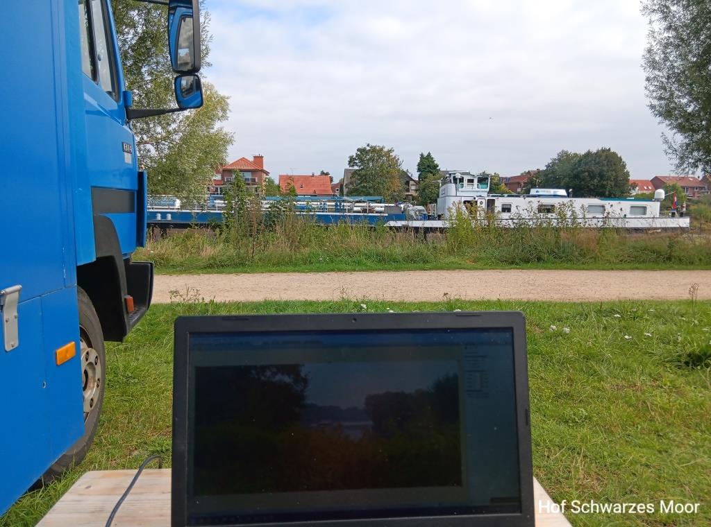 Etwas stromab finde ich noch den Biolandhof Bockholter Beete, der neben seinen Schafswiesen tatsächlich schöne Plätze anbietet. Leider ist der Boden zurzeit für mich zu weich. Und der recht gut bestückte Hofladen hat leider auch nichts in den Regalen, was mich zurzeit reizt. Ist aber ein schöner Platz, allerdings ohne Schiffe Gucken. Aber ist ja nicht jeder so gestrickt wie ich.